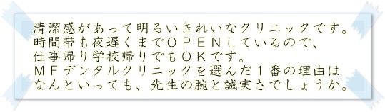 MFデンタルクリニックのインプラントの口コミの数々